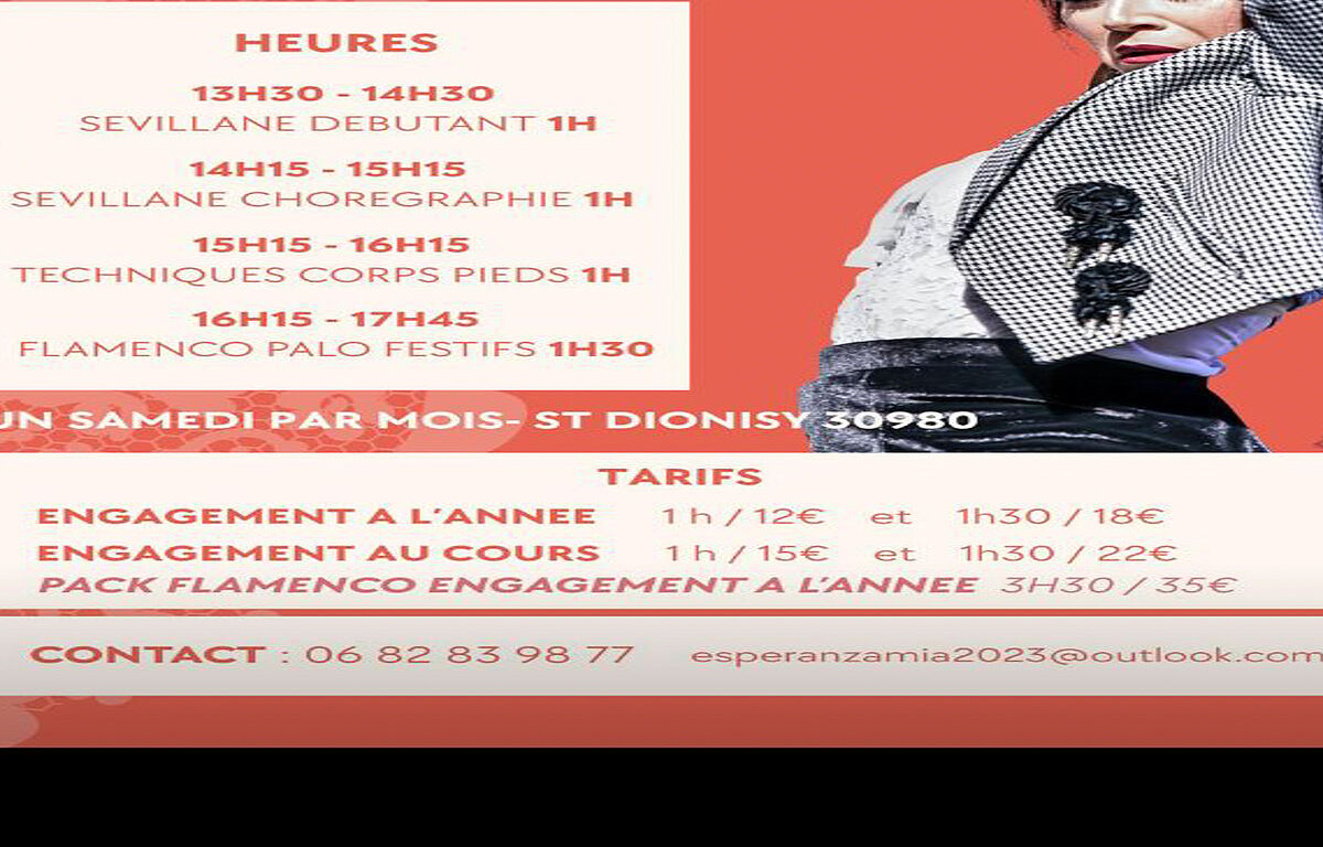 L'école Esperanza Mia vous attend dès 13h30 pour des stages Sevillanas, technique et palos festivos (selon niveaux), avec la maestra Melinda Sala.