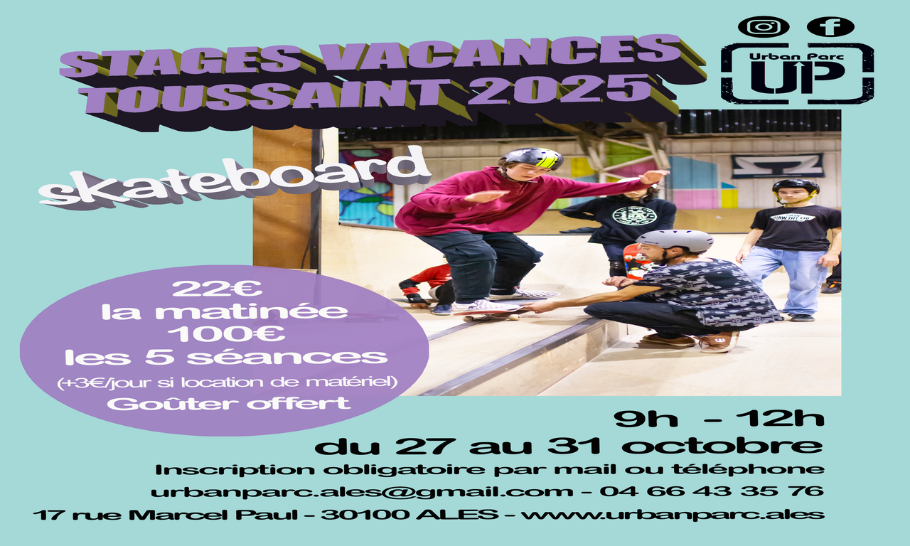 Pendant les vacances de la toussaint, venez vous initier au skatebord avec un stage encadré par des moniteurs diplômés.