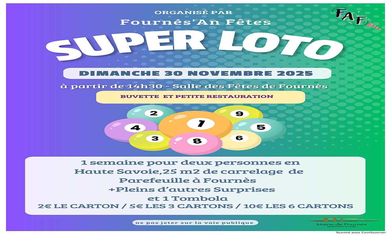 Distractions et loisirs, Loto, Fournès:Super Loto
