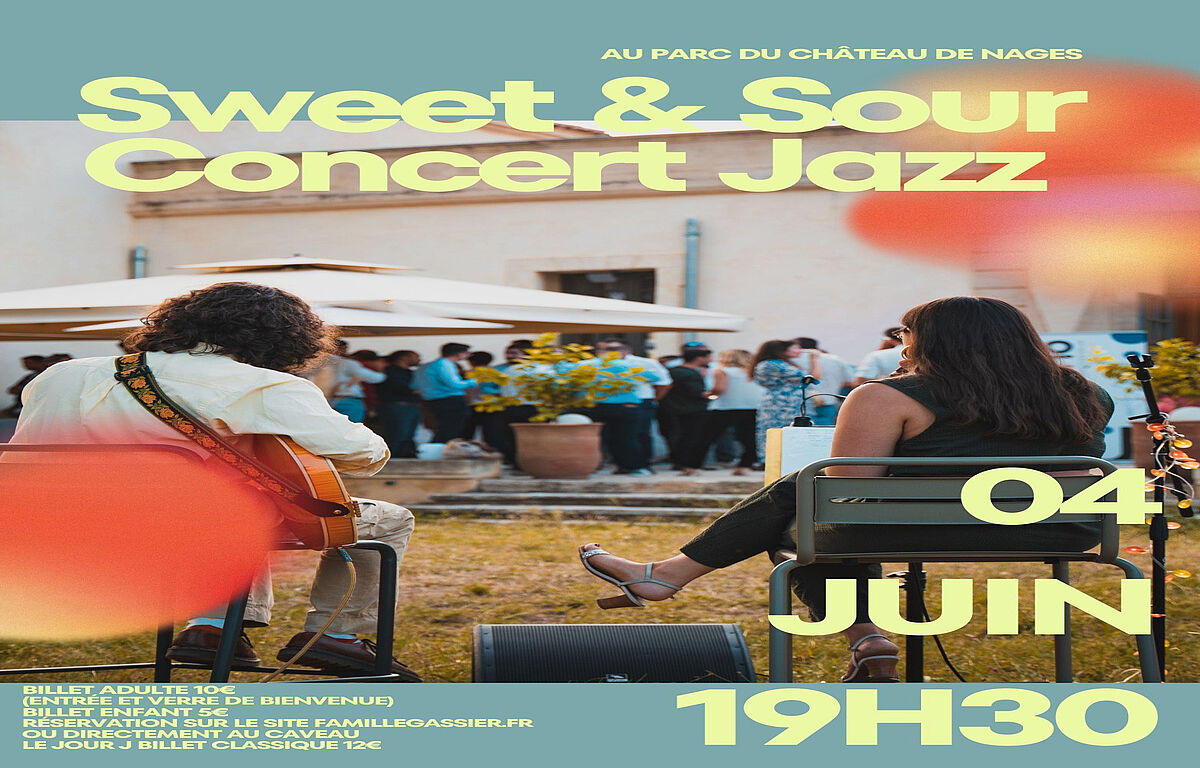 Nous avons le plaisir d’accueillir le groupe Sweet & Sour pour une soirée musicale Jazz, dans le cadre exceptionnel du parc du Château de Nages.