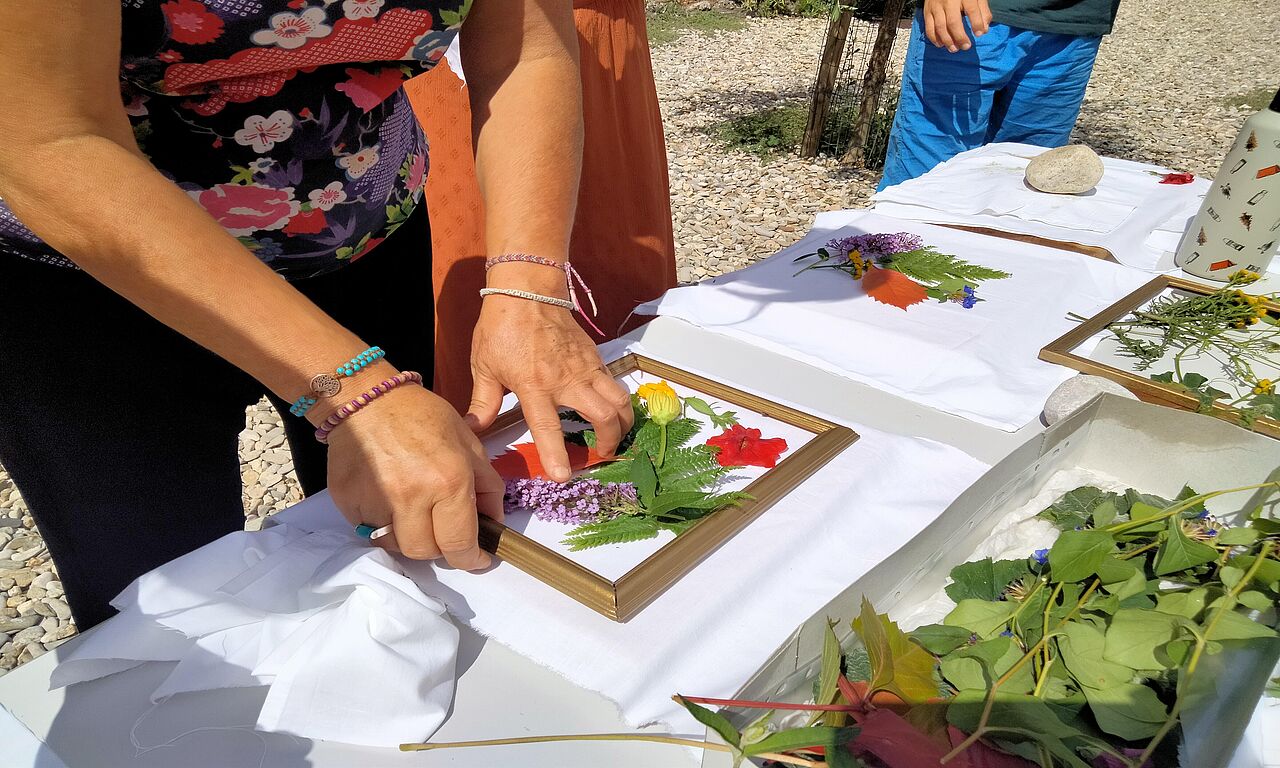 Réalisez l’impression de fleurs et feuilles sur du tissu.