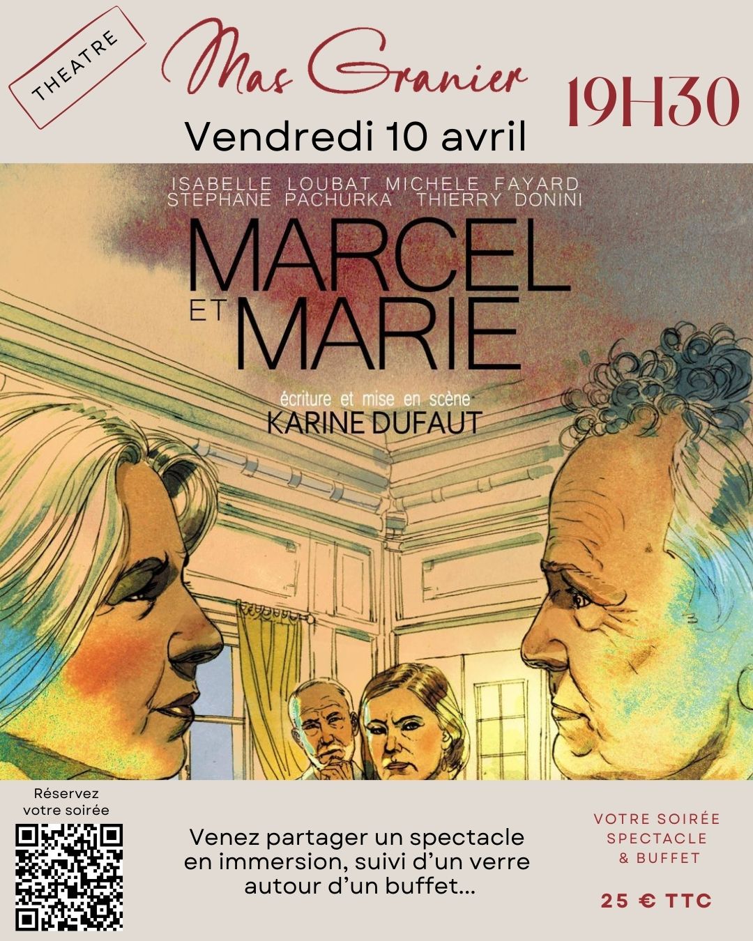 " Marcel et Marie" , un pièce de théâtre immersive écrite et mise en scène par Karine Dufaut, suivi d'un verre autour d'un buffet.