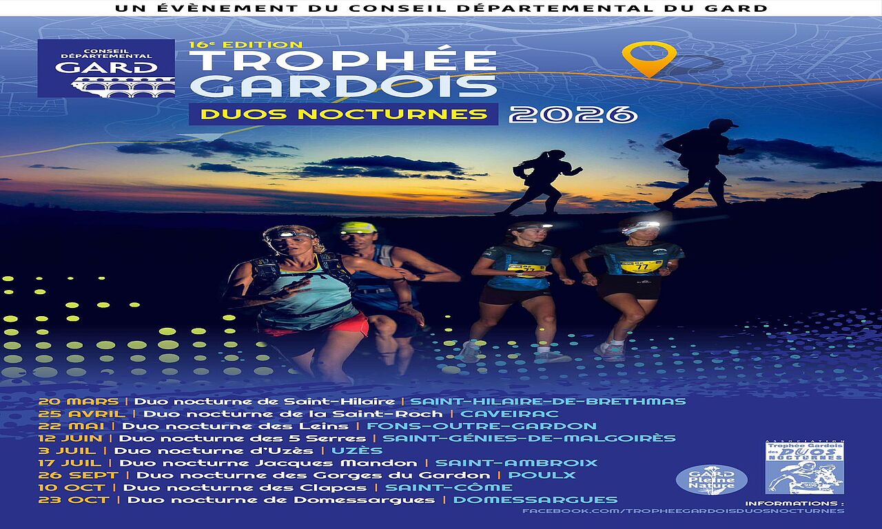 Dans le cadre de la 16ème édition du challenge / Trophée Gardois, "Duo Nocturne", découvrez l'épreuve "Duo Nocturne d'Uzès" pour 12.5 km de trail avec 350mD+ ! Alors à vos frontales !